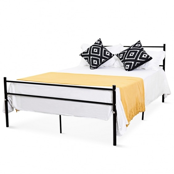 Este nuevo cama doble de acero es la solución perfecta para dormir y garantiza un confort agradable para dormir. La sección incorporada de cabeza y pie soporta el colchón y evita la flacidez. Hay suficiente espacio de almacenamiento debajo del marco de la cama para una caja de almacenamiento para guardar su ropa y edredones. Es ideal para el uso diario y puede integrarse fácilmente en su huésped o dormitorio debido a su diseño clásico y simple. Atributo: Excelente elasticidad - Este cama doble tiene un marco de listones integrado con 16 listones y es extremadamente estable. Previene eficazmente el dolor de espalda y ofrece una cómoda comodidad de mentira Gracias a las patas de soporte en el medio, el marco puede cargarse con hasta 200 kg. Amplio espacio de almacenamiento - El cama doble se encuentra aprox. a 36 cm del piso y ofrece un espacio de almacenamiento fácilmente accesible debajo. Puede colocar cajas o cajas de almacenamiento debajo de la cama, por ejemplo, para almacenar y organizar ropa, juguetes en ellas. Con sección de cabeza y pie - La sección incorporada de cabeza y pie soporta el colchón y evita la flacidez y aumentando la vida útil del colchón, especialmente con espuma viscoelástica y colchones de látex. Construcción de acero de alta calidad - Está hecho de acero estable y duradero y garantiza una excelente sujeción. El recubrimiento especial de la superficie previene eficazmente la oxidación, lo que también garantiza una larga vida útil. Diseño simple y clásico - El diseño simple es perfecto para cada habitación y también se puede usar perfectamente para dormitorios. Es la elección perfecta cuando se trata de dar la bienvenida a familiares y amigos y brindarles un lugar cómodo para dormir. Características: Construcción de acero robusto. Sección incorporada de cabeza y pie para soportar el colchón. Equipado con 16 listones y 10 soporte y puede soportar hasta 200 kg. Apto para el uso diario y fácil de limpiar. Diseño simple y clásico. Fácil instalación, todos los accesorios incluidos.