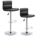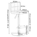 Estos nuevos taburetes de bar son muy cómodos y te relajarás por completo. Son simples y elegantes, perfectos para casa, restaurante, pub etc. Son de alta calidad y a buen precio. El cuero de PU resistente al agua y la estructura de metal resistente hacen que el taburete dure por muchos años. El asiento acolchado y ergonómico y el diseño rotativo hacen que el taburete sea cómodo y a la moda. ¡No dudes en comprarlos! Atributo: Clásico y moderno - Estos taburetes de bar combinan con estilos clásicos y modernos y son perfectos para restaurantes, bistrós, bares, patios, cocinas etc. Se pueden colocar donde prefieres. Diseño funcional - El taburete en cuero de PU gira a 360°, tiene un reposapiés de semicírculo estable y duradero y un asiento muy cómodo. Taburete cómodo - A diferencia de otros taburetes, nuestro reposapiés incorporado es estable y duradero y es cómodo para que los pies descansen. El respaldo es ergonómico y te relaja aún más. Taburete resistente y duradero - Hechos en metal, nuestros taburetes aguatan hasta 120 kg, son más resistentes y duran mucho más. Las dimensiones del taburete son: 40,5 x 35,5 x (87,5-108) cm. Estabilidad - El taburete tiene una base circular cromada resistente con un anillo de goma de 35,5 cm para evitar rayar el suelo. Este taburete te relajará mucho. Características: Taburetes nuevos y de alta calidad Respaldo cómodo y diseño moderno y a la moda Taburetes rotativos a 360° La base y el reposapiés son ambos de acero cromado, estables y duraderos Resistentes al agua, transpirables, larga duración y sin olores Siguen los principios ergonómicos Cojín cuadrado acolchado con esponja de alta densidad Altura regulable con sistema de gas y palanca El enchapado puede aislar el óxido y tiene un efecto espejo para poner de relieve el aspecto Anillo de goma de 35,5 cm en la parte inferior para evitar rayar el suelo Fácil de montar Vendidos en pareja Accesorios incluidos