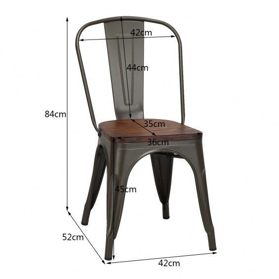 Color: Véase foto Material: Acero madera Tamaño total: 52 x 42 x 84 cm Peso neto: 20 kg Capacidad de carga: 120 kg     El paquete incluye: 4 x sillas de comedor 1 x instrucciones