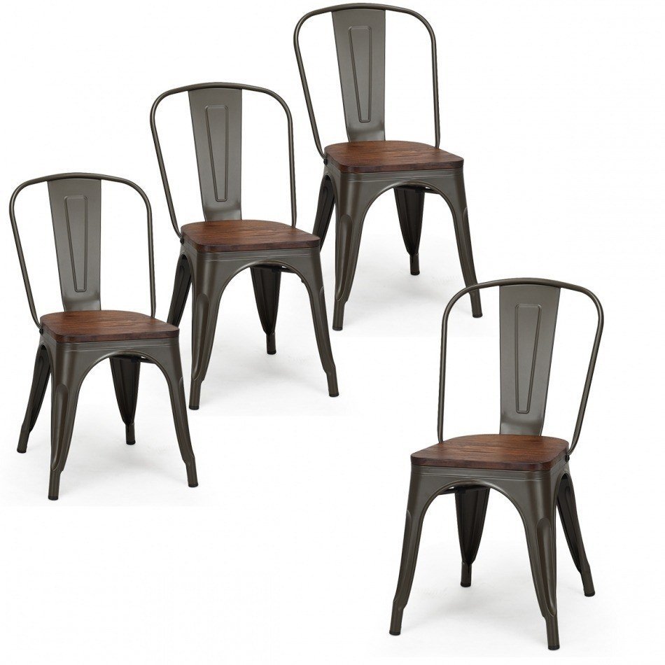 4 Sillas de Metal Apilables con Respaldo y Asiento de Madera para Casa Cocina Bar 52 x 42 x 84 cm