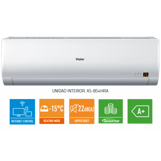 DescripciónDetallesAire Acondicionado 2x1 Multisplit 3x1 Haier Brezza AS09BS4HRALa unidad interior multisplit Haier AS09BS4HRA forma parte de la gama split Brezza, una serie de equipos de gran calidad y eficiencia que ofrece rendimientos impecables, permitiendo su instalación en todo tipo de aplicaciones domésticas y comerciales. Incluyen un compresor Inverter A-PAM que permite una rápida respuesta del equipo, una mayor eficiencia y menores vibraciones a baja y media frecuencia, convirtiendo a este conjunto de unidades interiores en equipos de gran calidad. Gracias a esto, han obtenido una calificación energética de A+ según la normativa ErP, factor que garantiza que conseguiremos reducir nuestro consumo eléctrico desde el primer día de su instalación. Además, estos equipos son equipos multisplit adecuados para casi cualquier clima, pues son capaces de ofrecer calefacción incluso a -15ºC de temperatura exterior, ofreciendo un ambiente perfecto. Incluyen un filtro Excellence que se encarga de eliminar del aire cualquier tipo de sustancia nociva para la salud.Especificaciones técnicasDescripciónInformación adicionalManufacturer HaierCaracterísticas