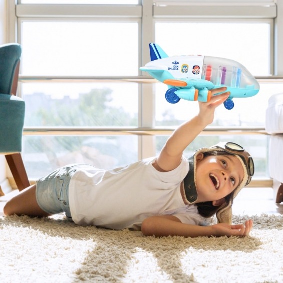 Este avión juguete tiene un aspecto lindo, color blanco y negro es muy limpio y atrae a los niños. Hecho de ABS es no tóxino y protege la salud mientras tiene larga vida de uso. El cabinete se puede abrir y hay 6 bloqueos de contrucción dentro. Cada representa un pasajero, el niño puede jugar junto con su compañero. Los botones arriba activan diferentes placeres, canciones, historias y conicimientos de aeronaves. Eso amplia dimensiones de conocimiento de su hijo. Además, al rodar las ruedas, activan el sonido de despegue y aterrizaje, también es muy divertido. Atributo: Materiales ecológicos - El avión de ABS que respeta el medio ambiente es no tóxico ni tiene olor raro. Protege el cuerpo de su niño. El juguete tiene larga vida útil y acompaña a su niño durante largo tiempo. Bloques de construcción - 6 bloques de construcción representan diferentes identidades de pasajeros. Los niños pueden realizan juegos de rol con su amigo mientras ejercitan las habilidades comunicativas. Deslizante - Empuje el juguete hacias adelante y el avión avanzará una distancia debido a la inercia. Es un avión y corre como un coche, divierten dos placeres. Cuando se mueve, el rodar de rueda activa el sonido de despegue y aterrizaje. Canciones - Empuje el botón arriba, el avión suena canciones de inglés. Despierta talento estérico de niño. Cuenta historias - También puede contar historias y conocimientos de aeronaves. Amplia dimensiones de conocimientos del niño y aumenta la memoría de su hijo. Característica: Materia de ABS, no daña salud de niño 6 bloqueos de construcción, agregan más divertido 3 canciones, 3 historias largas y 3 conocimientos de aeronaves, crecen el conocimiento Ruedas movibles, avión deslizante