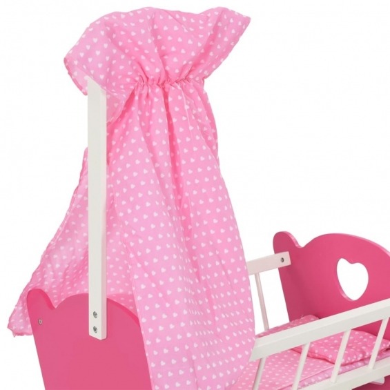 Nuestra cama de juguete para muñecas se caracteriza por sus brillantes colores y sus bonitos detalles. Es la compañía perfecta para los pequeños papás y mamás. La cama de juguete para muñecos tiene una robusta construcción de MDF muy duradera y fácil de limpiar. Tus hijos no solo adorarán jugar con esta cuna de juguete tan chic, sino que también les ayudará a desarrollar habilidades sociales y de comunicación mientras juegan. La cama incluye un dosel, una almohada y una bonita colcha. Llévate a casa esta divertida cuna de juguete para que tus hijos disfruten de horas y horas de juego imaginativo.