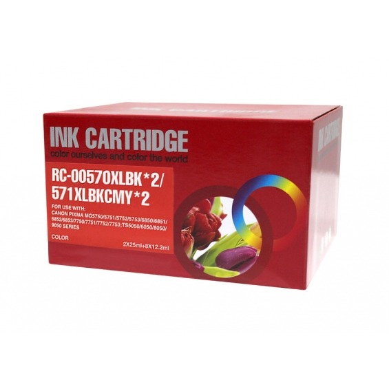 Multipack de 10 cartuchos de tinta genéricos Canon PGI570XL/CLI571XL (0318C007/0372C004/0386C005/0386C006) de alta calidad.Contenido del multipack genérico Canon PGI570XL/CLI571XL (0318C007/0372C004/0386C005/0386C006) de alta calidad:Canon PGI570XL/0318C001/0372C001 (Negro): 2 unidades.Canon CLI571XL/0331C001/0385C001 (Negro): 2 unidades.Canon CLI571XL/0332C001/0386C001 (Cian): 2 unidades.Canon CLI571XL/0333C001/0387C001 (Magenta): 2 unidades.Canon CLI571XL/0334C001/0388C001 (Amarillo): 2 unidades.Adecuado para uso en las siguientes impresoras:CANON Pixma MG 6851CANON Pixma MG 6852CANON Pixma MG 6853CANON Pixma MG 7750CANON Pixma MG 7751CANON Pixma MG 5750CANON Pixma MG 5751CANON Pixma MG 5752CANON Pixma MG 5753CANON Pixma MG 7752CANON Pixma MG 7753CANON Pixma TS 5050CANON Pixma TS 5051CANON Pixma TS 5053CANON Pixma TS 6050CANON Pixma TS 6051CANON Pixma TS 6052CANON Pixma TS 8050CANON Pixma TS 8051CANON Pixma TS 8052CANON Pixma TS 8053CANON Pixma TS 9050CANON Pixma TS 9055Rendimiento: 2x 22 ml / 8x 11 ml