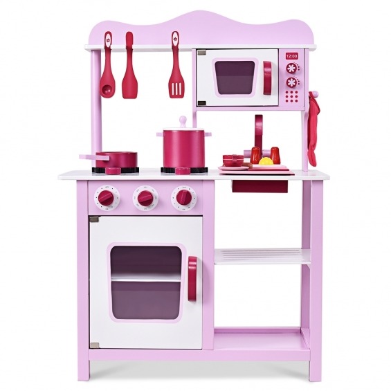Esta cocina para niños es un regalo ideal para niños. El niño puede incluso jugar en la habitación de los niños con la cocina de juego o con amigos. Los niños se sienten realmente maduros cuando preparan una fiesta en nuestra gran cocina. No solo pueden ser divertidos, sino que también pueden aprender habilidades sociales y cooperación. Atributoï¼? Diseño - Cocina de juego compacta con muchos accesorios útiles, cariñosamente diseñados y acabados con una alta calidad, para una diversión larga y sin problemas, el tamaño de 60x27x85cm se adapta bien a su niño Gran espacio de almacenamiento - La puerta transparente del gabinete y la puerta del horno se pueden abrir, con estantes y armario que proporcionan suficiente espacio de almacenamiento para los utensilios de cocina. Botón - Imitaciones modernas de aparatos de cocina con botones de control giratorio, a través de la escala, el niño puede controlar y configurar la temperatura fácilmente Accesorios - Accesorios incluidos accesorios para sartén, cacerola, vajilla, cubertería, utensilios de cocina, tarro de especias y muchos más Buen material - Hecho de E1 MDF y pino. La cocina de juegos tiene una larga vida. Características: Cocina compacta y encantadora con muchos accesorios Fregadero extraíble para facilitar la limpieza Botones giratorios en el horno, temperatura ajustable Con estantes y armario proporciona suficiente espacio de almacenamiento Cumple con los requisitos de seguridad del juguete Adecuado para niños a partir de 3 años