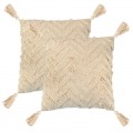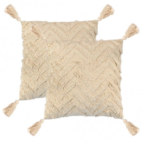 Con sus lujosos y decorativos detalles decorativos con la técnica "hand-tufted" y sus elegantes borlas en cada esquina, nuestro conjunto de 2 cojines será un llamativo aporte para su hogar. Las fundas de los cojines están hechas de tela de algodón con tinetes naturales con un relleno para que sean extra suaves y cómodos. La cremallera oculta en la parte posterior hace que sea fácil reemplazar el relleno o lavar la funda. El envío incluye 2 cojines con relleno