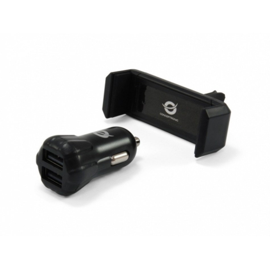 Este cargador dual USB de coche es la solución ideal para cargar su iPad o tablet y la mayoría de dispositivos USB, como (smart) phones, sistemas de navegación, reproductores MP3 y cámaras digitales directamente desde el mechero de su coche. El cargador dual USB de coche funciona con voltajes de 12/24 voltios y los convierte automáticamente al voltaje para dispositivos USB (5 volt DC). Podrá cargar fácilmente sus dispositivos USB durante sus viajes en coche, camión o barco, sin la necesidad de un PC, notebook o toma de corriente de pared. Características:? Cargue rápidamente los dispositivos USB (5V) gracias a la salida de alta potencia (máx. 2000mA).? Solo tiene que utilizar el encendedor de su coche (12V/24V).? 2 puertos USB para cargar 2 dispositivos de forma simultánea.? Soporte universal instalado en la ranuras de ventilación del vehículo, compatible con teléfonos de 5,5 a 8,5 cm.Especificaciones:? Especificaciones Técnicas:- Voltaje de salida: 5V.- Alimentación entrada: 12V/24V (mechero coche).- Alimentación salida: 5V / 2A.? Conexiones/Interfaces:- Puertos USB: 2uds.- Cargador USB: integrado.? Dimensiones y peso:- Largo: 55mm.- Ancho: 37mm.- Alto: 23mm.- Peso: 20 g.