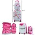 Nuestro conjunto de maletas consiste en maleta y mochila con un lindo diseño. El estuche ofrece mucho espacio para las cosas de los niños y las dos alturas diferentes de la barra de tiro, la maleta para el brazo del niño y del padre se puede ajustar de manera óptima. El interior de la mochila también es muy espacioso y tiene mucho espacio para juguetes, cuadernos, libros, etc. Un compañero de viaje ideal para sus hijos. Atributo: Materiales de alta calidad - Hecho de material duradero ABS y PC, ligero y duradero Suficiente espacio de almacenamiento - 16 '' caja + 12 '' mochila, un compartimento con correas de embalaje, otro compartimento con prácticas cremalleras para facilitar el cierre, el interior de la mochila también es muy espacioso. Diseño sofisticado - Aspecto lindo con ruedas livianas giratorias de 360 °, interior con bolsillo con cremallera y correas para equipaje que no se deslizan y mantienen las cosas ordenadas Más comodidad - El telescópico se puede extraer dos veces, ideal para niños y padres, con un asa de transporte de alta calidad, para que la maleta y la mochila también se puedan llevar como un bolso Práctico - Se puede tomar como equipaje de mano en el avión, un compañero de viaje óptimo para sus niños Características: Puede tomarse como equipaje de mano en el avión La mochila de 16 '' casos + 12 '' proporciona suficiente espacio de almacenamiento para las cosas de los niños Hecho de PP y ABS, larga vida y fácil de cuidar Mango telescópico ajustable en altura asegura la postura correcta El diseño interior garantiza que las cosas no se resbalen y permanezcan ordenadas