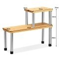 ¡Nuestro estante es muy practico y a la moda! Con 2 métodos de montaje se adapta a varias exigencias. Hecho para caber en los ángulos el estante maximiza el uso del espacio y ayuda a mantener la casa limpia y ordenada. Hecho en acero inoxidable y bambú es resistente y duradero. Las almohadillas antideslizantes en PE aumentan la estabilidad y no dañan la encimera. Es fácil de montar y se puede utilizar en cocina salón baño etc. Atributo: Maximiza el uso del espacio: este estante fue diseñado para maximizar el uso del espacio y cabe en los ángulos. La repisa abierta tiene mucho espacio para varios objetos. Se puede utilizar como repisa para las especias en la cocina pero también como estante para la oficina o dentro de los armarios. 2 métodos de montaje: el estante está formado por una tabla grande y una pequeña. Se puede poner la pequeña en la grande o en la encimera para tener la forma de escala. Este diseño único es muy practico y se adapta a tus necesidades. Material duradero y de alta calidad: hecho en acero inoxidable y bambú ecológico el estante es duradero y resistente. Además las tablas están pintadas con pintura segura y la superficie es lisa y sin olores. Aspecto a la moda y almohadillas antideslizantes: con un diseño simple y a la moda el estante es bonito para ver y combina con todos los estilos decorativos. Las almohadillas antideslizantes en PE aumentan la estabilidad y evitan rayar la encimera. Fácil de montar y limpiar: el estante incluye las instrucciones detalladas y todo lo necesario para montarlo fácilmente en pocos minutos y sin esfuerzos. Además se limpia fácilmente pasando un trapo húmedo. Características: Crea más espacio donde se necesita Diseño con 2 repisas para ordenar mejor los artículos Hecho en acero inoxidable y bambú para durar más en el tiempo Con almohadillas antideslizantes en PE para evitar rayar 2 métodos de montaje para diferentes necesidades Fácil de montar Hecho para caber también en los ángulos Aspecto simple y a la moda para decorar la casa Utilizable en cocina baño salón etc.