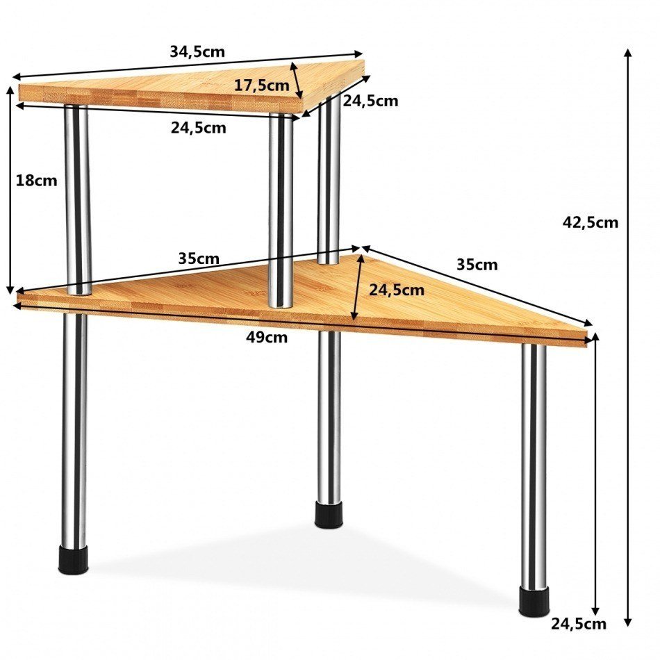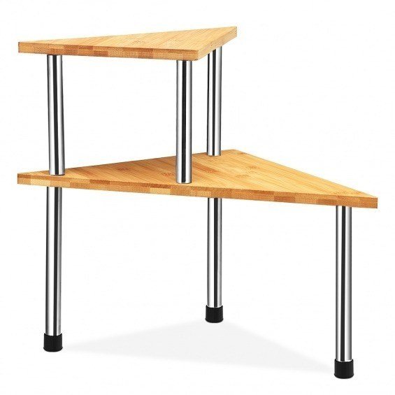 ¡Nuestro estante es muy practico y a la moda! Con 2 métodos de montaje se adapta a varias exigencias. Hecho para caber en los ángulos el estante maximiza el uso del espacio y ayuda a mantener la casa limpia y ordenada. Hecho en acero inoxidable y bambú es resistente y duradero. Las almohadillas antideslizantes en PE aumentan la estabilidad y no dañan la encimera. Es fácil de montar y se puede utilizar en cocina salón baño etc. Atributo: Maximiza el uso del espacio: este estante fue diseñado para maximizar el uso del espacio y cabe en los ángulos. La repisa abierta tiene mucho espacio para varios objetos. Se puede utilizar como repisa para las especias en la cocina pero también como estante para la oficina o dentro de los armarios. 2 métodos de montaje: el estante está formado por una tabla grande y una pequeña. Se puede poner la pequeña en la grande o en la encimera para tener la forma de escala. Este diseño único es muy practico y se adapta a tus necesidades. Material duradero y de alta calidad: hecho en acero inoxidable y bambú ecológico el estante es duradero y resistente. Además las tablas están pintadas con pintura segura y la superficie es lisa y sin olores. Aspecto a la moda y almohadillas antideslizantes: con un diseño simple y a la moda el estante es bonito para ver y combina con todos los estilos decorativos. Las almohadillas antideslizantes en PE aumentan la estabilidad y evitan rayar la encimera. Fácil de montar y limpiar: el estante incluye las instrucciones detalladas y todo lo necesario para montarlo fácilmente en pocos minutos y sin esfuerzos. Además se limpia fácilmente pasando un trapo húmedo. Características: Crea más espacio donde se necesita Diseño con 2 repisas para ordenar mejor los artículos Hecho en acero inoxidable y bambú para durar más en el tiempo Con almohadillas antideslizantes en PE para evitar rayar 2 métodos de montaje para diferentes necesidades Fácil de montar Hecho para caber también en los ángulos Aspecto simple y a la moda para decorar la casa Utilizable en cocina baño salón etc.