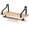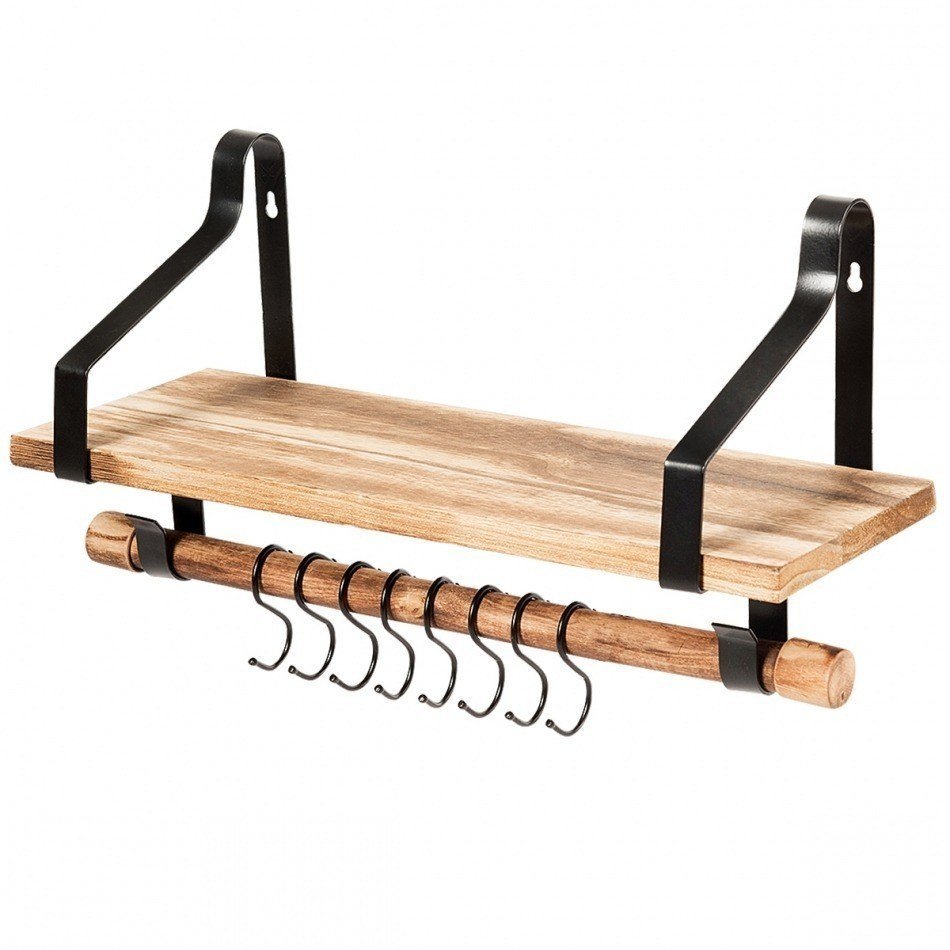 Nuestra repisa montada a la pared te ayuda a mantener la casa limpia y ordenada. Hecha de madera de paulonia garantiza la estabilidad y la duración. Con 8 ganchos removibles y un toallero se puede utilizar en todas las habitaciones de la casa como cocina dormitorio baño salón etc. Es también perfecta para poner piezas de colección plantas y tazas. Ya que es compacta y se monta a la pared es ideal para pequeños pisos. Atributo: Resistente y de alta calidad: la repisa está hecha de madera solida de paulonia muy resistente y duradera en vez de tablas industriales. Con soportes en acero de alta calidad la repisa es duradera y aguanta grandes capacidades de peso. Ganchos removibles y toallero: con 8 ganchos con forma de S la repisa se puede utilizar como encimera en la cocina o para colgar utensilios como palas cucharones etc. Puede ser también una repisa para el baño para poner toallas o rollos de papel higiénico. Retro y salva espacio: ya que está montada a la pared la repisa no ocupa espacio en el suelo. Por eso maximiza el uso del espacio especialmente en pequeños pisos. En estilo retro combina con todos los muebles de la casa. Repisa multiuso: se puede utilizar como espacio adicional para ordenar pequeños objetos en baño dormitorio cocina etc. Además te ayuda a tener la casa limpia y ordenada. Fácil de montar: se monta fácilmente con las herramientas y las instrucciones en pocos minutos. Con hoyos ya visibles es aún más fácil fijarla a la pared sin dañarla. Características: Tablas de madera resistentes y soportes en acero para garantizar estabilidad y duración 8 ganchos removibles fáciles de utilizar Toallero de madera cuando se quitan los ganchos Ideal para tener la casa ordenada con un diseño salva espacio Perfecta para poner piezas de colección plantas tazas etc. Ideal para cocina baño salón etc. Fácil de limpiar gracias a los materiales impermeables Fácil de montar