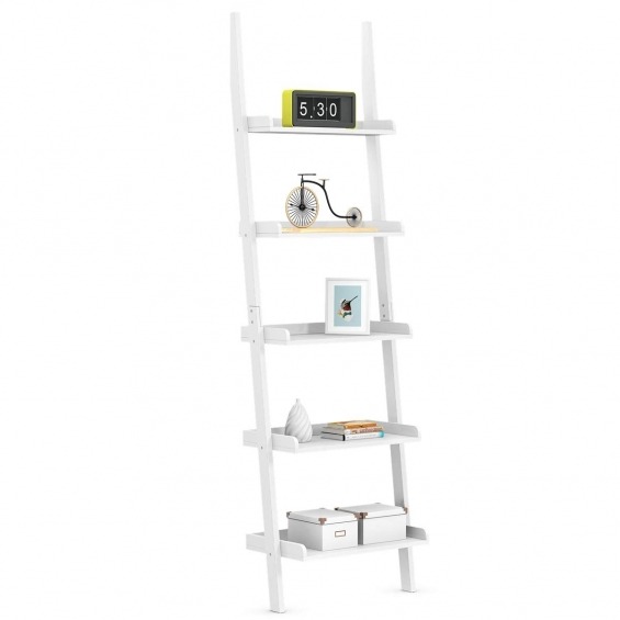 Estantería de Escalera con 5 Estantes Madera Estante de Pared para Planta Flores Librería 56 x 32,5 x 189cm Blanco