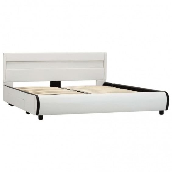 Estructura de cama con LED cuero sintético blanco 160x200 cm