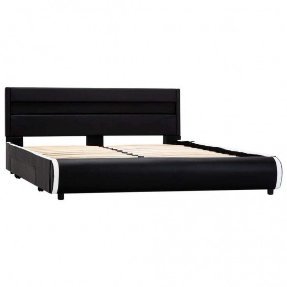 Estructura de cama con LED cuero sintético negro 160x200 cm