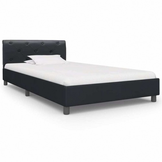 Estructura de cama de cuero sintético negro 90x200 cm