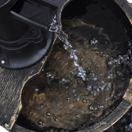 Esta fuente de estilo vintage tiene un diseño decorativo de bomba de pozo. Se puede montar fácil y rápidamente. La fuente está equipada con una bomba de agua de funcionamiento suave y el agua recircula continuamente. La fuente está hecha de plástico resistente y es adecuada para uso en interiores. La entrega incluye una fuente, una bomba de agua y una manguera.