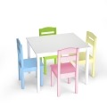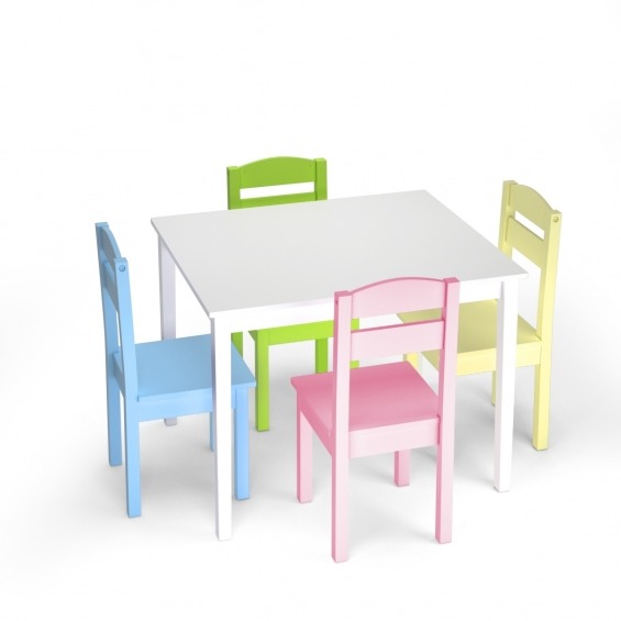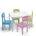 Este grupo de asientos para niños consiste en 1 mesa y 4 sillas,para uso diario, también se puede usar para varios niños. Muebles infantiles de madera de pino, sanos y duraderos. El borde redondeado no dañará a sus niños.Uso seguro garantizado. Diseño simple y colorido para atraer la atención de los niños. Atributo: Material de alta calidad - Muebles para niños están hecho de madera de pino ecológico.Es saludable,seguro y duradero. El borde redondeado no dañará a sus niños.Uso seguro garantizado. 5 piezas Grupo de asientos para niños - El set contiene 1 mesa y 4 sillas para niños , la altura es óptima para el niño. Y adecuado para varios niños, los niños pueden usar con sus compañeros y hermanos. Aplicación de escenarios múltiples - El conjunto de mueble es simple en diseño y clásico en color. Adecuado para diferentes estilos de decoración. Puede colocarlo en una habitación infantil, sala de juegos o dormitorio. Multifuncional - Este mueble para niños es versátil.se puede usar como escritorio, donde los niños aprenden. También se puede usar para jugar, dibujar, colocar juguetes. Fácil de montar y cuidar - Rápido y fácil de configurar con instrucción práctica.Simplemente limpie con un paño húmedo. Características: El set incluye 1 mesa y 4 sillas. Estable y la altura es óptima para el niño La mesa grande ofrece mucho espacio para jugar Ligero, los niños pueden moverlos fácilmente Fácil de montar y cuidar.