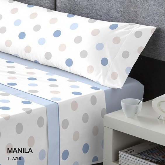 Juego de sábanas de microlina con un diseño bonito y divertido, donde aparecen elementos circulares de colores sobre un fondo blanco. Es un modelo muy combinable, disponible en 3 colores.