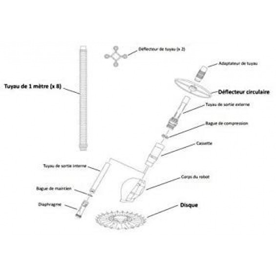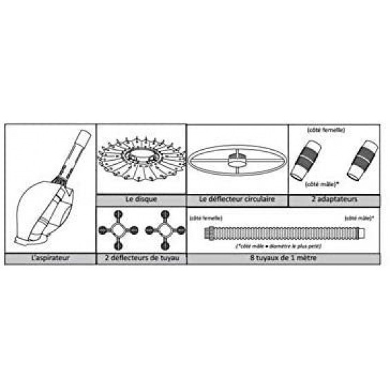 Limpiafondos hidráulico para piscinas con paredes rígidas rectangulares u ovaladas (máx. 8 x 4 m), Adaptado al revestimiento liner, poliéster, PVC armado u hormigón pintado, Para fondos planos y de pendientes suaves.Solo limpieza del fondo por conexión a la red de filtración de la piscina, directamente en el skimmer o en la toma del limpiafondos, Potencia mínima recomendada para la bomba: 1/2CV .Aspiración y almacenamiento de los residuos en la cesta del skimmer, en el prefiltro de la bomba o en el filtro, Especialmente eficaz para la aspiración del polvo y la arena.Desplazamiento aleatorio, Disco de aletas flexibles para una movilidad óptima, No se recomienda nadar o bañarse mientras el limpiafondos está en la piscina, Garantía 2 años
