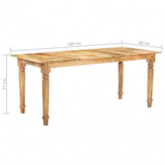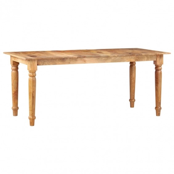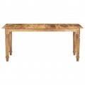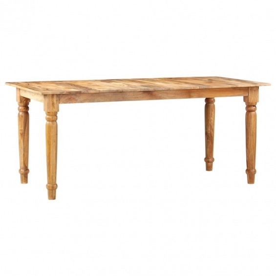 ¡Agrega instantáneamente un impresionante encanto vintage al interior de tu hogar con nuestra mesa de comedor! Hecho de madera de mango maciza, esta mesa de comedor será un aporte distintivo a tu casa. La mesa de comedor está hecha de madera de mango macizo. La madera de mango es una madera dura densa y robusta que tiene hermosas rayas y contornos marrones o dorados en su superficie. La artesanía y las bonitas vetas de la madera hacen que cada mueble sea único y ligeramente diferente del resto. Además, las patas de estilo clásico agregan un encanto elegante a la mesa de la cocina, lo que la hace atractiva en cualquier habitación. Este producto es fácil de montar. Nota importante: Los colores y las vetas de la madera varían de una pieza a otra, por lo que cada una es única; la entrega es aleatoria.