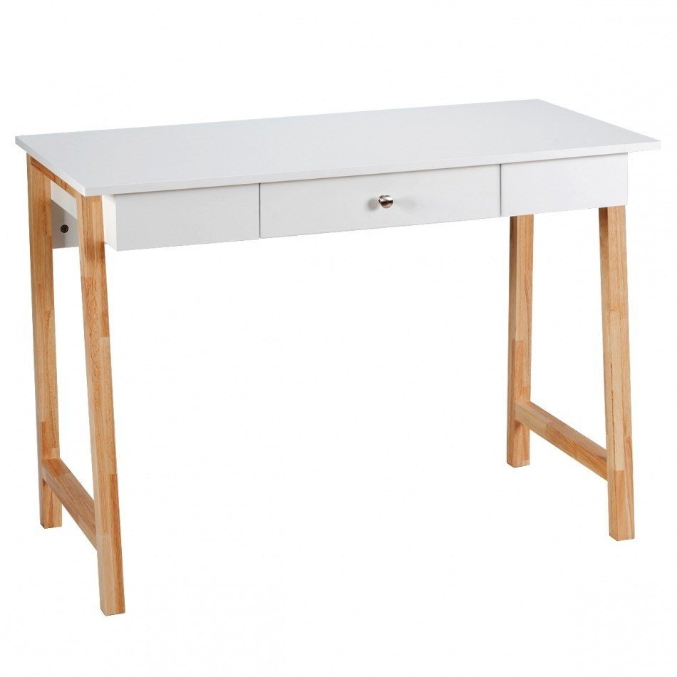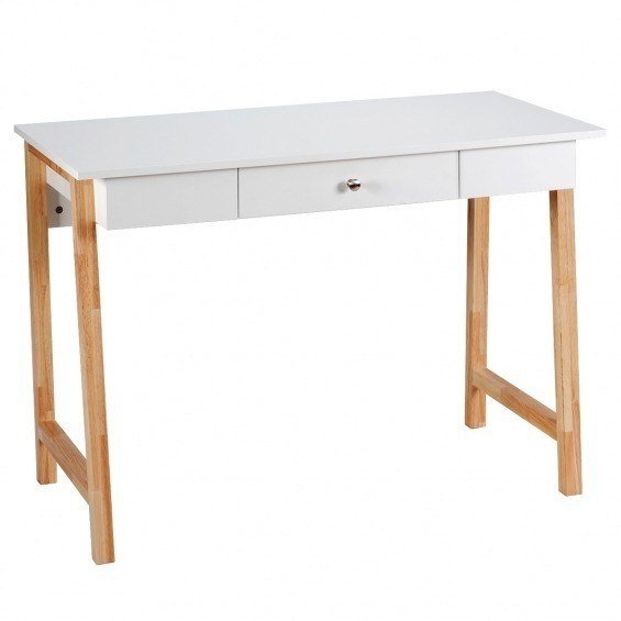 Nuestro escritorio multifuncional mejora las condiciones de trabajo y es la mejor elección. Está hecho en MDF P2 blanco con patas de madera. El material es duradero y la estructura es resistente. La superficie es espaciosa y el cajón tiene muchísimo espacio. Se puede utilizar como escritorio para trabajar y estudiar pero también como tocador con cajón según necesidad. Es bonito y práctico y queda bien en todas las habitaciones de la casa. Atributo: Multiuso: se puede utilizar como escritorio para jugar a los videojuegos para trabajar y para estudiar o como tocador. Es ligero y se puede desplazar fácilmente a todos lados. Queda bien en el dormitorio o en la oficina. Amplia superficie y mucho espacio: el escritorio tiene una superficie amplia muy cómoda para trabajar y tiene también un cajón grande. Cuando te maquillas o trabajas puedes poner los cosméticos o los libros en el cajón sin preocuparte del desorden. De esta manera tendrás un ambiente limpio y ordenado que te hará sentir bien. Estructura resistente y duradera: la superficie está hecha en MDF P2 de alta densidad y de altísima calidad. Las patas de la mesa son de madera de goma no se pliegan y garantizan la estabilidad de la estructura. Todo esto hace que el escritorio sea resistente y estable sin oscilar. Diseño moderno y elegante: el escritorio tiene un diseño abierto y un aspecto muy bonito. Es también una bonitísima decoración para la casa y combina con todos los estilos decorativos gracias al aspecto moderno. El escritorio blanco y marrón añade un toque diferente a la habitación e ilumina la casa. Fácil de montar y limpiar: la estructura del escritorio es simple así que es fácil de montar en poco tiempo siguiendo las instrucciones detalladas. Además la superficie es lisa y se limpia fácilmente. Características: Escritorio multifuncional utilizable como escritorio o tocador Se puede utilizar en estudio dormitorio cuarto de juegos oficina etc. Patas de madera de goma para aumentar la estabilidad Cajón amplio Diseño moderno que combina con todas las habitaciones de la casa Superficie espaciosa para jugar trabajar y estudiar Estructura siempre fácil de montar Cajón con guías para abrirlo y cerrarlo fácilmente Almohadillas antideslizantes para proteger el suelo de los rasguños Seguro de utilizar con la certificación EPA Acabados lisos fáciles de limpiar
