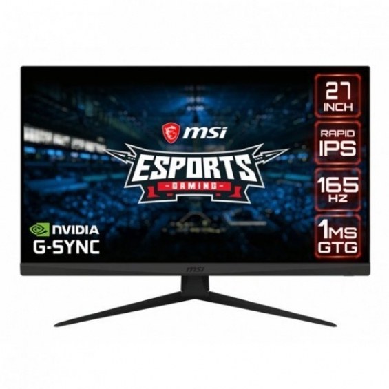 Visualice su victoria con el monitor para juegos de deportes electrónicos MSI Optix G273QF. Equipado con una frecuencia de actualización de 2560x1440, 165 hz, panel de tiempo de respuesta GTG de 1 ms, Optix G273QF le brindará la ventaja competitiva que necesita para derrotar a sus oponentes. Disfruta de un juego extremadamente fluido y sin rasgaduras con la tecnología compatible con NVIDIA G-Sync incorporada cuando se combina con una tarjeta gráfica NVIDIA compatible.Características:-IPS rápido: proporciona un tiempo de respuesta rápido GTG de 1 ms, optimiza los colores y el brillo de la pantalla.-Alta resolución WQHD: los juegos se verán aún mejor y mostrarán más detalles.-Frecuencia de actualización de 165 Hz: responda más rápido con cuadros más suaves.-Tiempo de respuesta GTG de 1 ms: elimine el desgarro de la pantalla y las velocidades de cuadro entrecortadas.-Compatible con NVIDIA G-SYNC: evita el desgarro o el tartamudeo de la pantalla, lo que produce un juego ultra suave y sin demoras.-Visión nocturna: sintonizador negro inteligente para iluminar su día resaltando los detalles finos en las áreas oscuras.-Amplia gama de colores: los colores y detalles del juego se verán más realistas y refinados.-Modo de juego: elija el mejor modo para experimentar los mejores efectos visuales.-Diseño sin marco: disfruta de la mejor experiencia de juego con biseles súper estrechos.-Antiparpadeo y menos luz azul: juegue aún más y evite la fatiga visual y la fatiga.-Ángulo de visión amplio de 178 °: los colores y los detalles se mantendrán nítidos en más ángulos con un ángulo de visión amplio de 178 °.Especificaciones:Pantalla:-Diagonal de la pantalla: 68,6 cm (27)-Brillo de la pantalla (típico): 300 cd / m²-Resolución de la pantalla: 2560 x 1440 Pixeles-Relación de aspecto nativa: 16:9-Tiempo de respuesta: 1 ms-Tipo HD: Quad HD-Tecnología de visualización: LCD-Superficie de la pantalla: Mate-Forma de la pantalla: Plana-Razón de contraste (típica): 1000:1-Relación de contraste (dinámico): 100000000:1-Máxima velocidad de actualización: 165 Hz-Ángulo de visión, horizontal: 178°-Ángulo de visión, vertical: 178°-Número de colores de la pantalla: 16,7 millones de colores-Tipo de pantalla: IPS-Tamaño de pixel: 0,2331 x 0,2331 mm-Tamaño visible, horizontal: 59,7 cm-Tamaño visible, vertical: 33,6 cm-Frecuencia digital horizontal: 90,9 - 242,4 kHz-Frecuencia digital vertical: 30 - 165 Hz-Espacio de color RGB: sRGB-Cobertura sRGB (típica): 125%Desempeño:-NVIDIA G-SYNC: Si-AMD FreeSync: No-Tecnología Flicker free (reduce el parpadeo de la pantalla): Si-Tecnología Low Blue Light (baja luz azul): Si-Modo de juego: SiMultimedia:-Altavoces incorporados: No-Cámara incorporada: NoDiseño:-Posicionamiento de mercado: Juego-Color del producto: Negro-Diseño sin marco: SiPuertos e Interfaces:-Conector USB incorporado: No-Puerto DVI: No-HDMI: Si-Número de puertos HDMI: 2-Versión HDMI: 2.0-Cantidad de DisplayPorts: 1-Versión de DisplayPort: 1.2-Entrada de audio: No-Salida de auriculares: SiErgonomía:-Interfaz de panel de montaje: 100 x 100 mm-Ranura para cable de seguridad: Si-Tipo de ranura de bloqueo del cable: Kensington-Montaje VESA: Si-Ajustes de altura: No-Inclinable: Si-Ángulo de inclinación: -5 - 20°-Exhibición en pantalla (OSD): SiControl de energía:-Consumo energético: 32 W-Voltaje de entrada AC: 100 - 240 V-Frecuencia de entrada AC: 50/60 Hz-Corriente de entrada: 3.42 A-Voltaje de salida de adaptador AC: 19 VPeso y dimensiones:-Ancho del dispositivo (con soporte): 614,9 mm-Profundidad dispositivo (con soporte): 228,4 mm-Altura del dispositivo (con soporte): 444,6 mm-Peso (con soporte): 4,5 kg