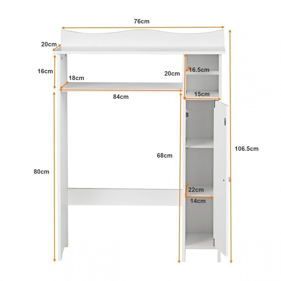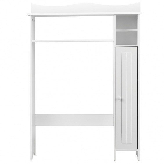 Este es nuestro mueble versátil y multifunción arriba del inodoro con mucho espacio para poner varios artículos. Con un porta rollo de papel higiénico 2 repisas abiertas y un armario lateral con repisa regulable te permiten poner artículos de diferentes alturas. La estructura es resistente y salva espacio y con los acabados blancos combina con todos los estilos decorativos. La parte superior curva otorga un aspecto moderno y elegante perfecto para baño balcón y lavandería. La parte inferior de 80 cm es ideal para los inodoros estándares. ¡Cómpralo ya! Atributo: Diseño salva espacio: este mueble del baño tiene 2 repisas abiertas un porta rollo de papel higiénico y un armario lateral con repisa regulable y mucho espacio para poner varios productos. Además la forma reducida ocupa poco espacio tanto en el suelo como en el baño. Aspecto elegante: siendo un mueble funcional tiene un diseño contemporáneo y un aspecto muy bonito que decoran el baño. La parte superior es curva los acabados son blancos y el armario lateral es muy cómodo y combinan con varios estilos decorativos. Repisas regulables: el armario lateral tiene 2 repisas regulables en 3 niveles según el tamaño de los objetos a poner. De esta manera puedes organizar el espacio como prefieres. Estructura solida y resistente: la estructura está hecha en MDF P2 con una elaboración excelente y está reforzada por los tornillos para garantizar estabilidad y duración. Además todo el mueble es muy resistente y difícil de rasguñar o deformar. Detalles producto: el material MDF y los acabados blancos duran en el tiempo y combinan con el estilo decorativo de la habitación. Tamaño total: 76 x 20 3 x 106 7 cm. Capacidad de peso de la repisa superior: 20 kg. Capacidad de peso de la repisa regulable: 5 kg. Características: Mueble del baño elegante y contemporáneo Une belleza y practicidad MDF P2 para garantizar duración y estabilidad Aspecto elegante con acabados blancos Parte inferior de 80 cm ideal para los inodoros estándares Parte superior curva que añade un toque único al baño Se puede utilizar el espacio extra para poner más artículos Con porta rollo de papel higiénico 2 repisas abiertas y un armario lateral con repisa regulable Excelente solución para baños con espacio limitado