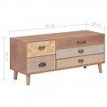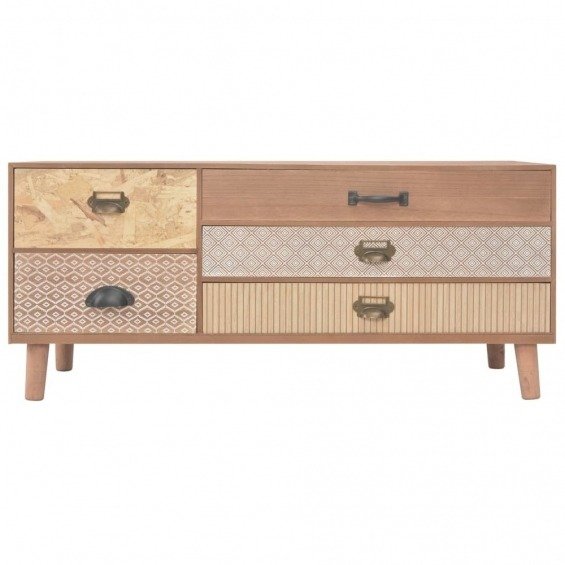 ¡Agregue un toque de encanto rústico a la decoración de su hogar con nuestro elegante mueble! Este sorprendente mueble para la televisión está equipado con 5 cajones en diferentes diseños y colores, lo que le da al soporte de TV una bonita apariencia y un amplio espacio de almacenaje. Será un aporte práctico y decorativo para su sala de estar o dormitorio. La parte superior grande de la mesa baja es ideal para colocar el televisor, el router, dispositivos multimedia o colocar objetos decorativos, marcos de fotos o incluso macetas, mientras que los 5 cajones brindan un amplio espacio para guardar todo tipo de elementos más pequeños como llaves, blocs de notas, bolígrafos y otros objetos organizadas y al alcance de la mano. Además, hecho de madera de pino maciza, este armario HiFi es muy estable y duradero. La mesa auxiliar de madera es fácil de montar.