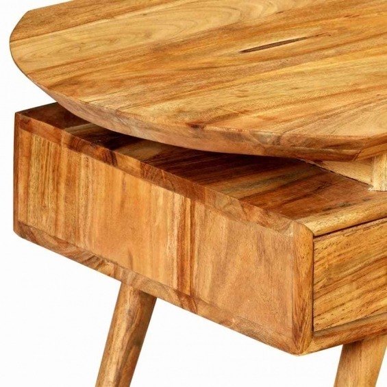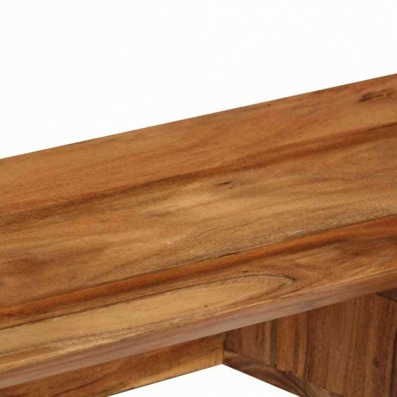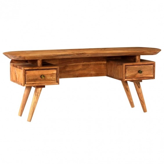 Este mueble para el televisor de estilo retro se convertirá en el foco de atención de tu sala de estar o área de entretenimiento. La construcción de madera maciza de acacia de este mueble para la TV hace que sea muy duradero. El soporte para la tele está hecho a mano y las bonitas vetas de la madera hacen que cada pieza de mobiliario sea única y ligeramente diferente del resto. La gran mesa y los cajones tienen un amplio espacio para mantener ordenados su reproductor de DVD, videoconsola, dispositivo de transmisión y soportes de medios. El soporte de TV es fácil de montar. Nota importante: Los colores varían de una pieza a otra, lo que hace que cada uno de nuestros muebles de TV sea único; la entrega es aleatoria
