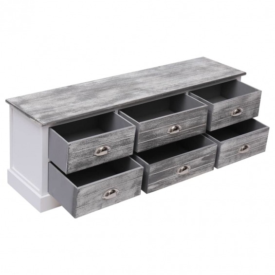 ¡Dele a su hogar un encanto rústico y distintivo con este elegante mueble para la televisión! Puede usarlo como soporte de TV, armario Hi-Fi, armario bajo, aparador, etc. Hecho de madera de paulownia y madera de álamo de calidad, este mueble es duradero y fácil de limpiar. Además, está equipado con 6 cajones que funcionan suavemente y que brindan un amplio espacio de almacenamiento para sus pertenencias personales, lo que lo convierte en el aliado perfecto para mantener su habitación ordenada. Este armario es fácil de montar.