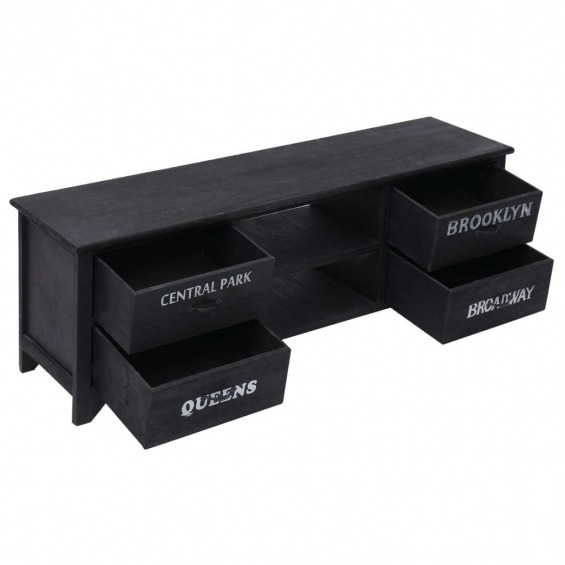 ¡Fusionando moda y funcionalidad, este mueble para la televisión definitivamente se convertirá en un foco de atención en su salón! Puede usarlo como soporte de TV, armario HiFi, aparador, etc. Hecho de madera de paulownia y madera de álamo de calidad, este moderno mueble para el TV será un aporte atemporal para su hogar. Además, está equipado con 4 cajones con tiradores para almacenar objetos y 2 compartimentos abiertos para guardar dispositivos multimedia, videoconsolas, revistas y otros artículos. El armario es fácil de montar.