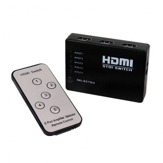 OkTech OK-SHDMI100 Switch Conmutador HDMI 4K 5 Puertos (con Mando a Distancia).Características:-Este switch 5 en 1 incorpora un chip IC que te permite conectar hasta 5 dispositivos HDMI a otro de salida, así como tener un dispositivo HDMI de entrada y elegir entre hasta 5 pantallas de salida.-Soporta resoluciones hasta 4K UltraHD, 3D, HDCP y CEC.-Incluye cable de alimentación y mando a distancia por infrarrojos.-Compatible con HDTV, Xbox, PS3, PS4, Fire TV, Apple TV y otros dispositivos HDMI.-Conectar y listo: no necesita instalación de drivers.