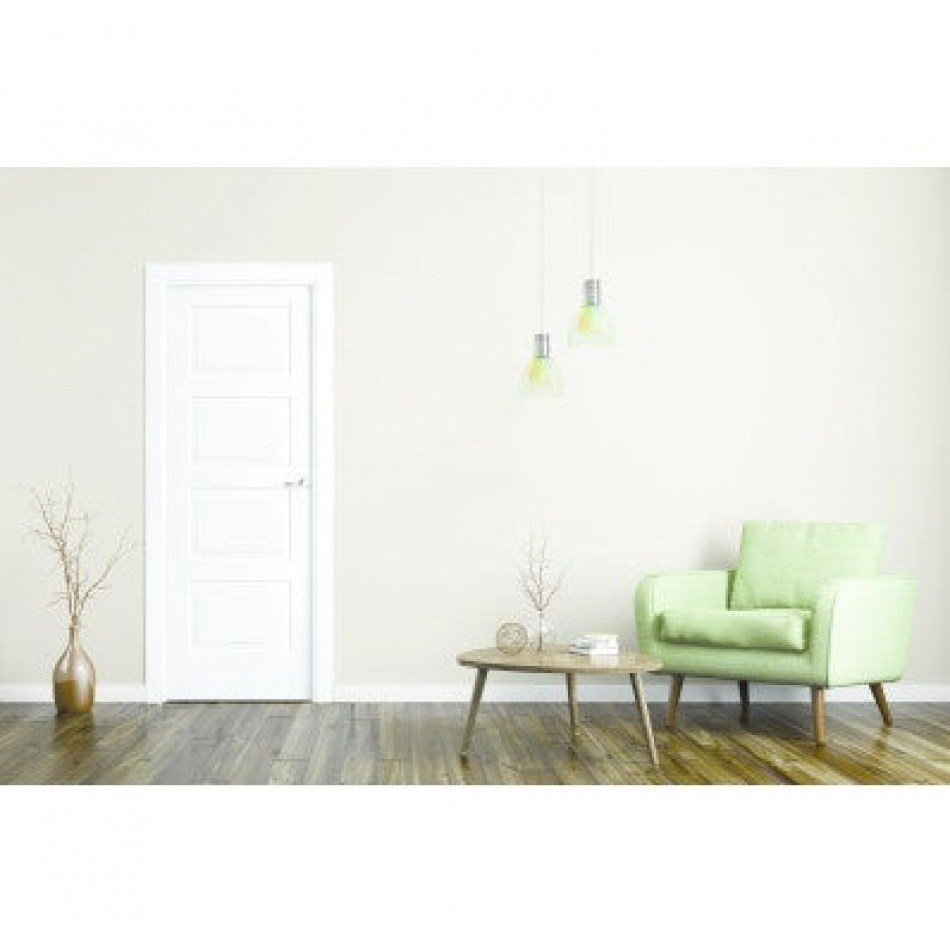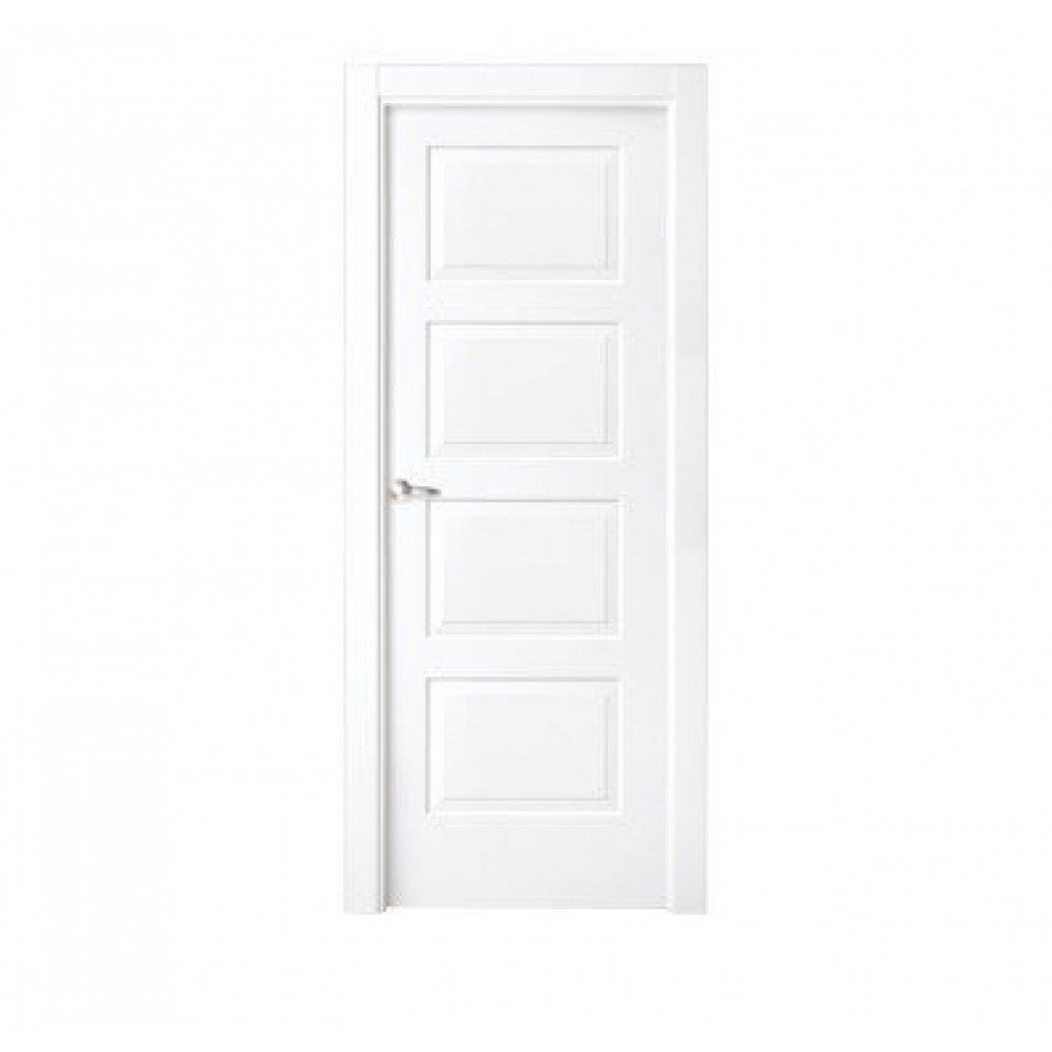 Montada en block sobre premarco de HDF hidrófugo extensible. Hoja HDF hidrofugo lacada blanca de 203 x 82,5 cm. Laca de 450 g/m2.
