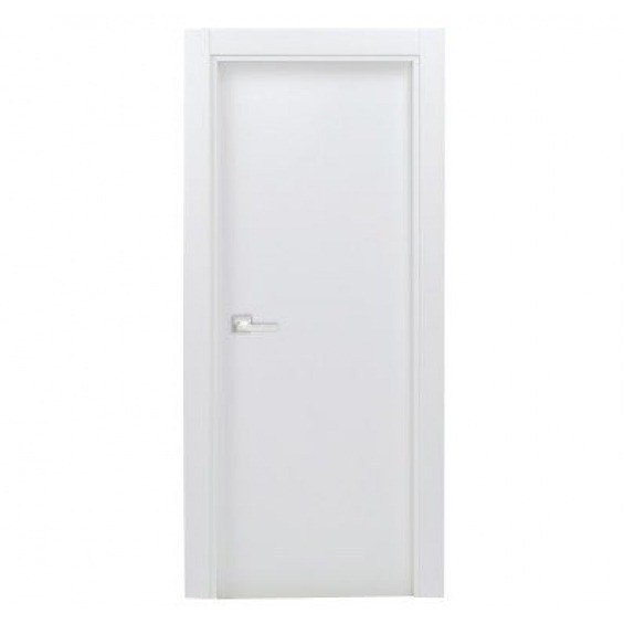 Montada en block sobre premarco extensible macizo. Hoja de 4 cm maciza recubierta de melamina, canteada en PVC de 203 x 92,5 cm. Picaporte magnético.