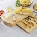 La tabla de quesos con cubiertos de queso es una buena idea para un regalo para los amantes del queso. El juego incluye un cuchillo de mantequilla un cuchillo de pan una navaja de afeitar parmesano y un tenedor de queso. Con este set puedes probar el queso maravillosamente. Atributo: Tabla ovalada de queso - Tabla ovalada de queso buena forma 35 cm x 19 cm Juego de cuchillos de queso - Un cuchillo de mantequilla un cuchillo de pan un cuchillo para afeitar parmesano y un tenedor de queso Material de alta calidad - Tabla de quesos de madera; Cuchillos de acero inoxidable y madera de bambú. Diseño elegante - Equipado con una tapa abrible los cuchillos están enchufados elegantemente en el tablero. Hermosa estructura - La tabla para quesos con cajón para cuchillos integrado los cubiertos se ajustan al cajón para cuchillos extraíble y fácil de limpiar Características: Un cuchillo de mantequilla un cuchillo de pan un cuchillo de afeitar parmesano y un tenedor de queso. Tabla de quesos de madera; Cuchillos de acero inoxidable y madera. Equipados con una tapa desbloqueable los cuchillos están conectados al tablero