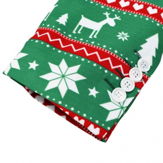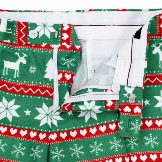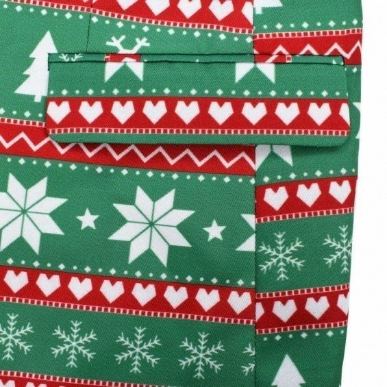 ¡Conviértase en el protagonista de cada fiesta de Navidad con nuestro traje navideño estampado de 2 piezas! Su caprichoso estampado con temas navideños es justo lo que necesita para adentrarse en el espíritu navideño. El traje está hecho de un tejido de poliéster impreso de alta calidad. Añadimos una corbata a juego para completar su atuendo. Nota: El traje tiene un corte ajustado y los pantalones tienen dobladillos sin terminar, por lo que puede adaptarlos a la longitud deseada. La camisa y el bolsito no están incluidos en la entrega.